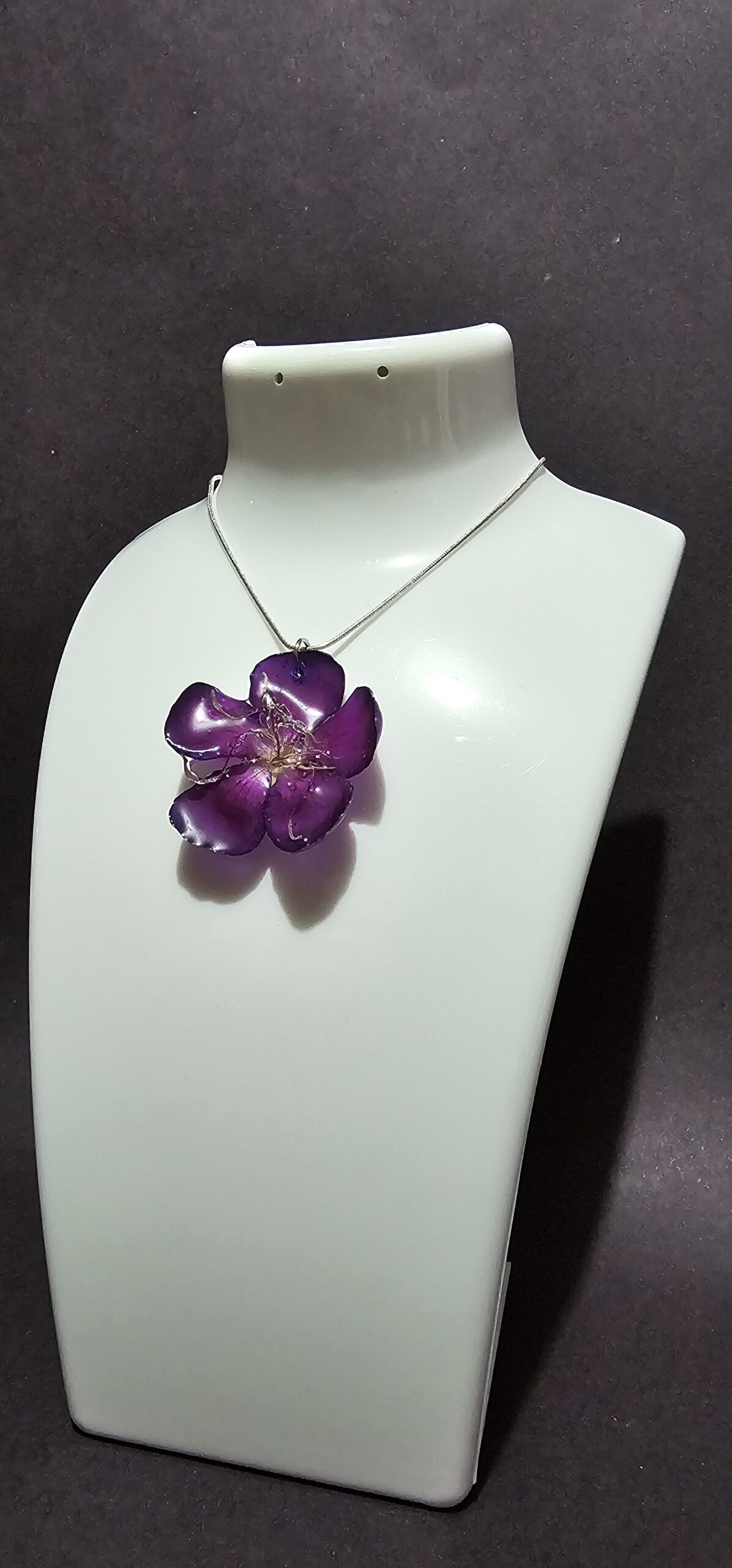 Añade un toque de elegancia natural a tu estilo con nuestro hermoso collar de dije de Pleroma en resina. Esta pieza artesanal captura la belleza de la Pleroma Semidecandrum, elaborada cuidadosamente con resina de alta calidad para preservar su vibrante color y detalles.