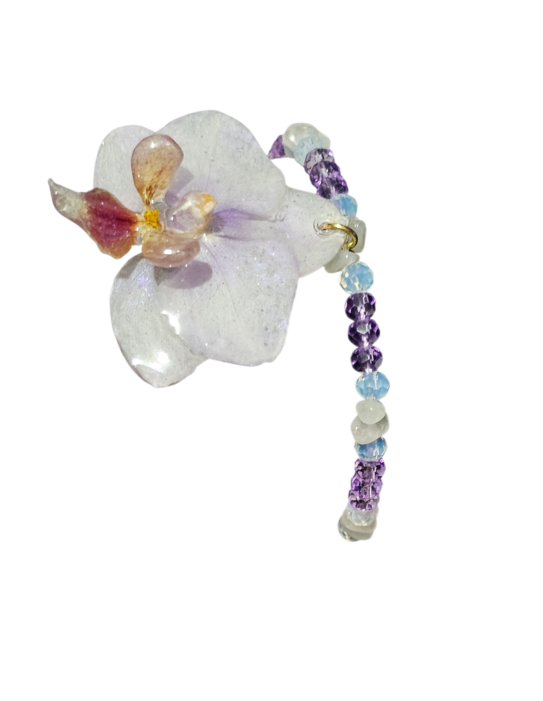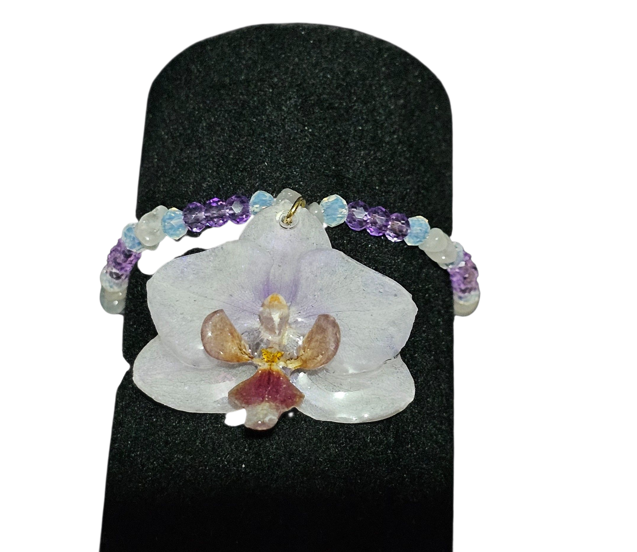 Añade un toque de elegancia natural a tu estilo con nuestra pulsera artesanal de orquídea phanelopsis preservada en resina. Esta pieza única captura la esencia efímera de la flor en su máximo esplendor, conservada cuidadosamente mediante un proceso artístico que realza su color, forma y textura.